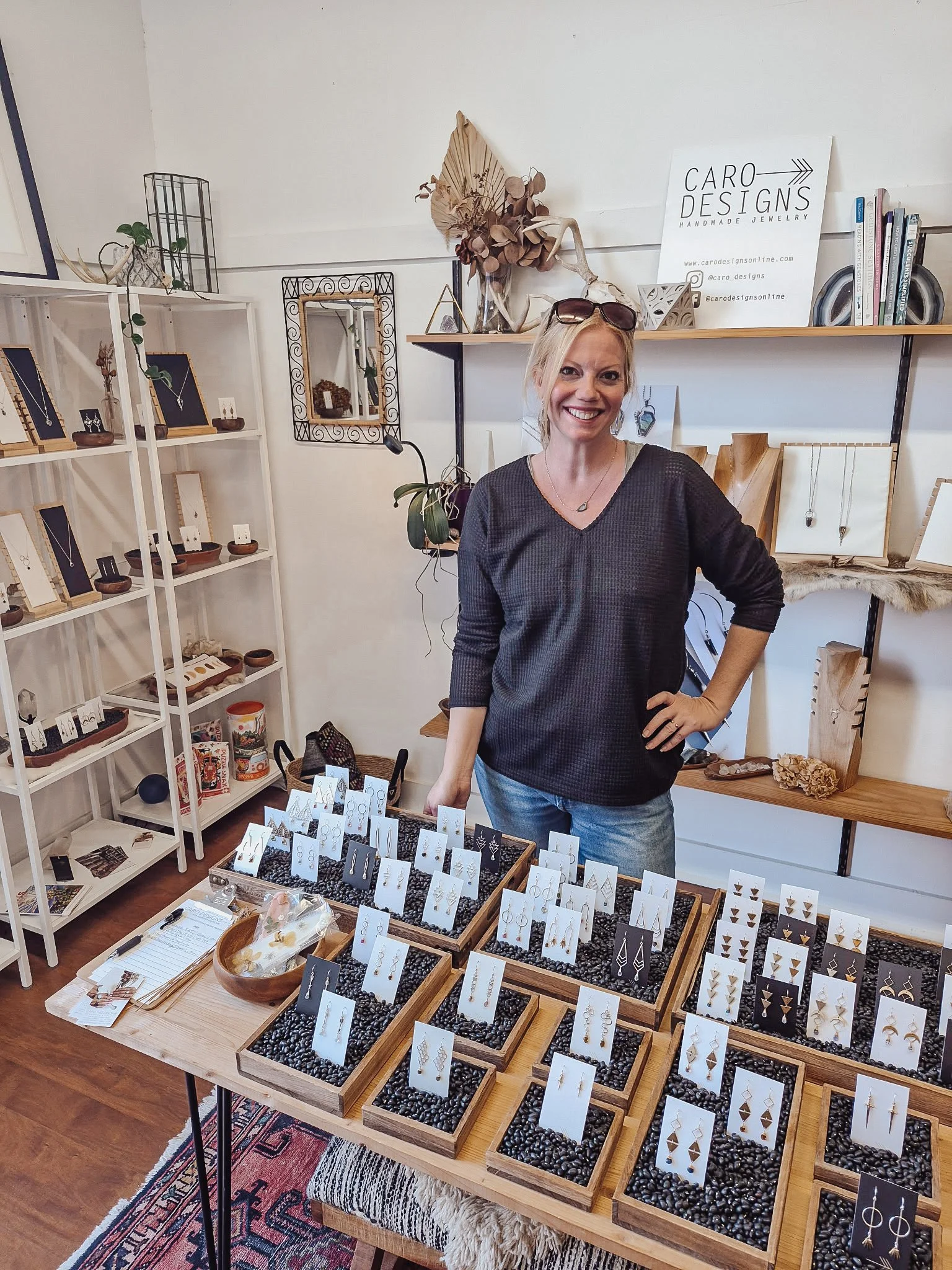 Well, that is how Caro Designs got started! I was visiting my sister in Asheville about 12 years ago and she showed me a pair of earrings that a friend of hers had made. I was blown away. I couldn't believe that someone had made them! From there, I bought books, supplies and the tools I needed to teach myself how to make my own jewelry. After about 8 years, I took a few private classes on metal smithing and I was completely in love!