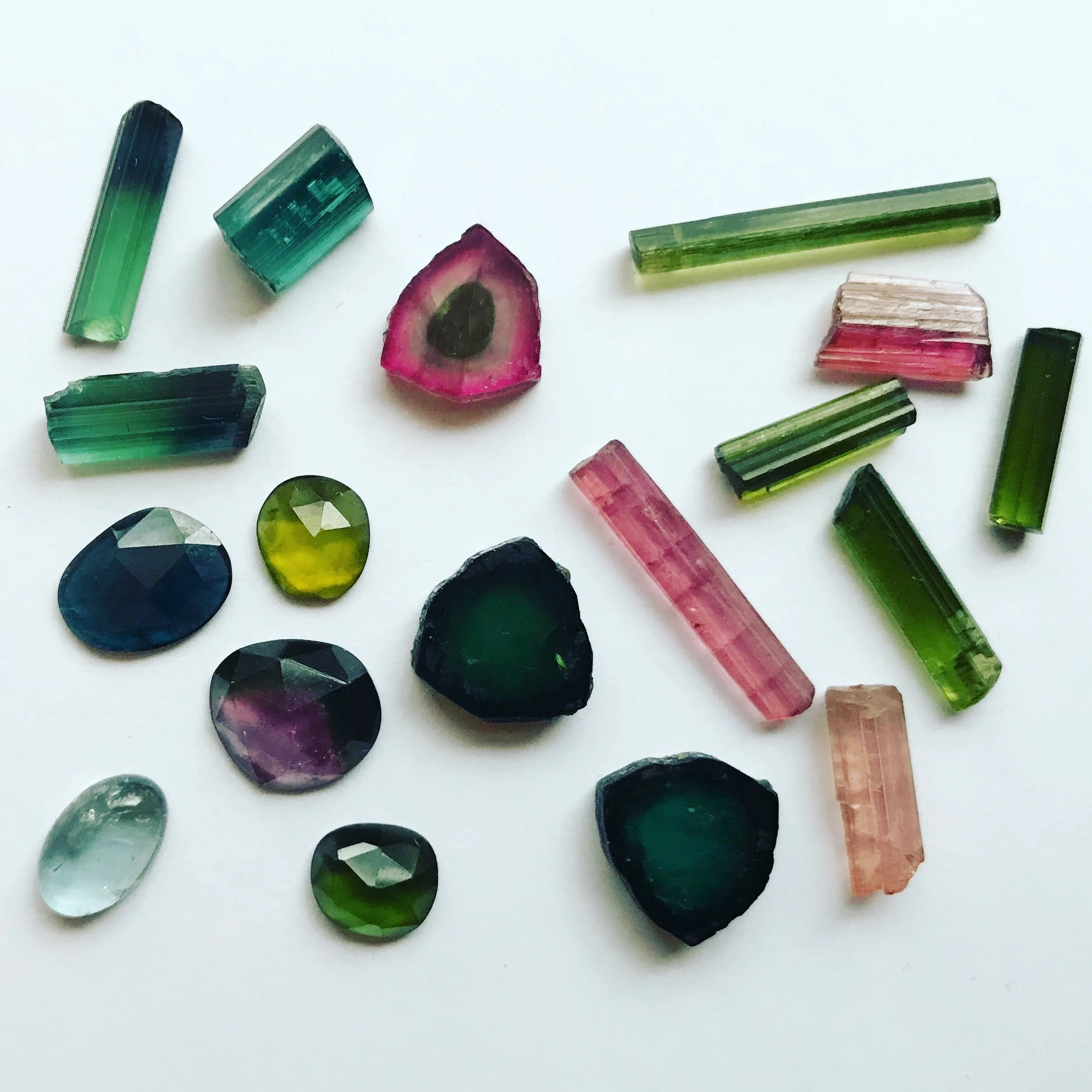 Y'all I am so excited about my newest cohesive collection! I've been thinking about it for months and was finally able to get to the Asheville Gem Show to pick out stones for it. My newest collection is going to be called Tourmaline Dreams with an emphasis on Tourmaline gemstones and using their shape as inspiration in the designs. I chose stones that you could stare at all day - seriously, they are so delicious you could get lost in them! Here is a sneak peek of some of the Tourmaline stones I will be using and a few pieces from the collection!