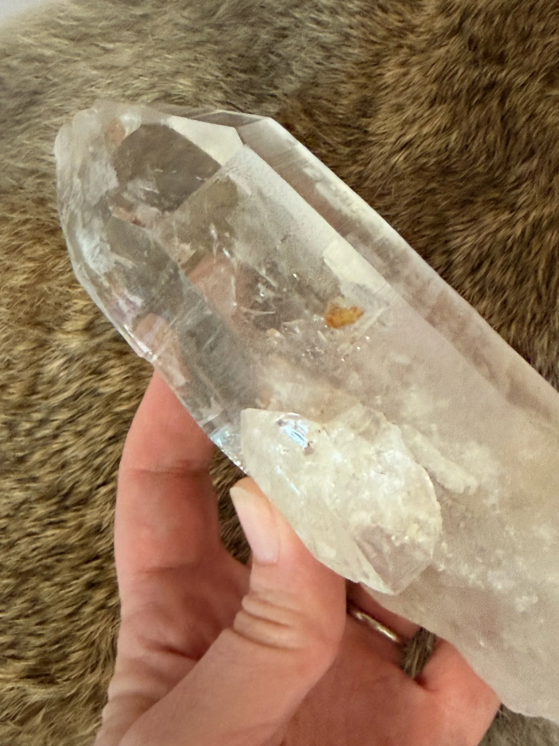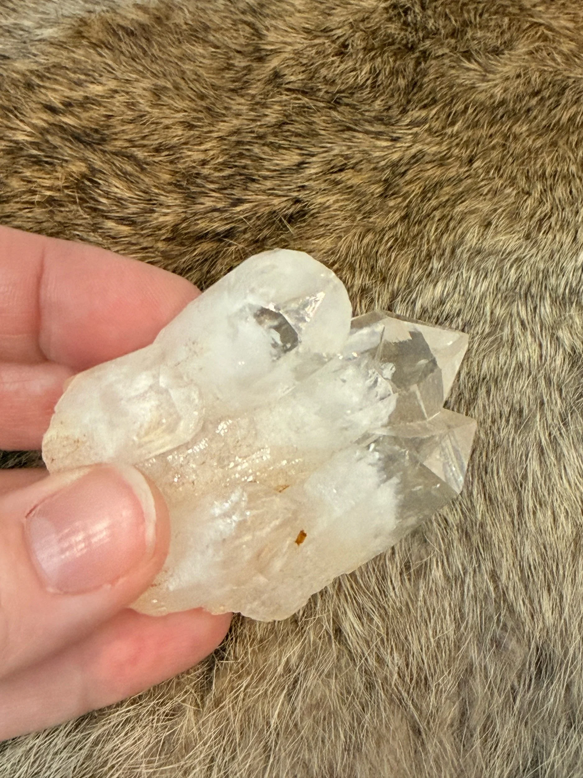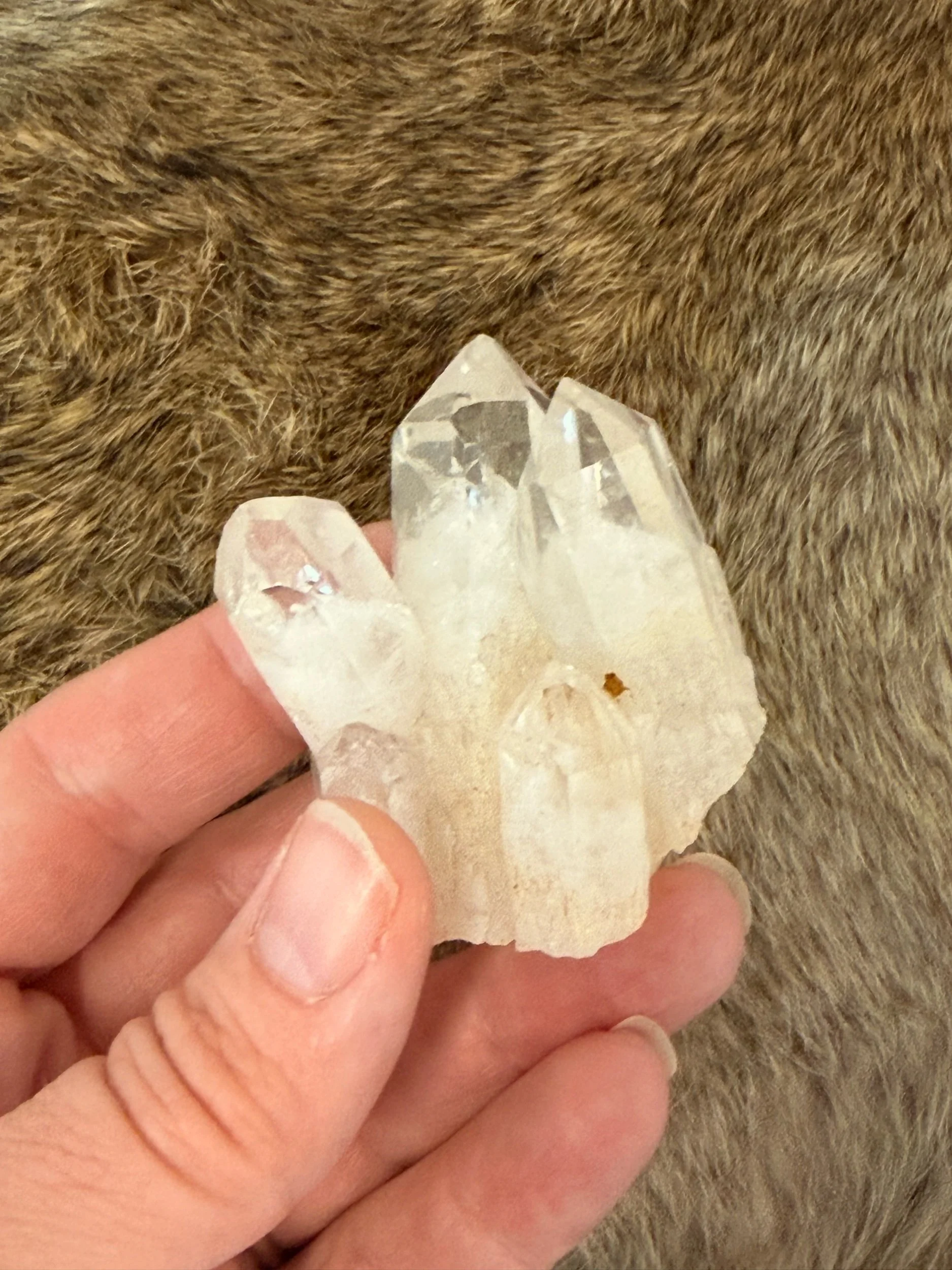 This sweet little Quartz Point Cluster appears to have phantom crystals inside!
